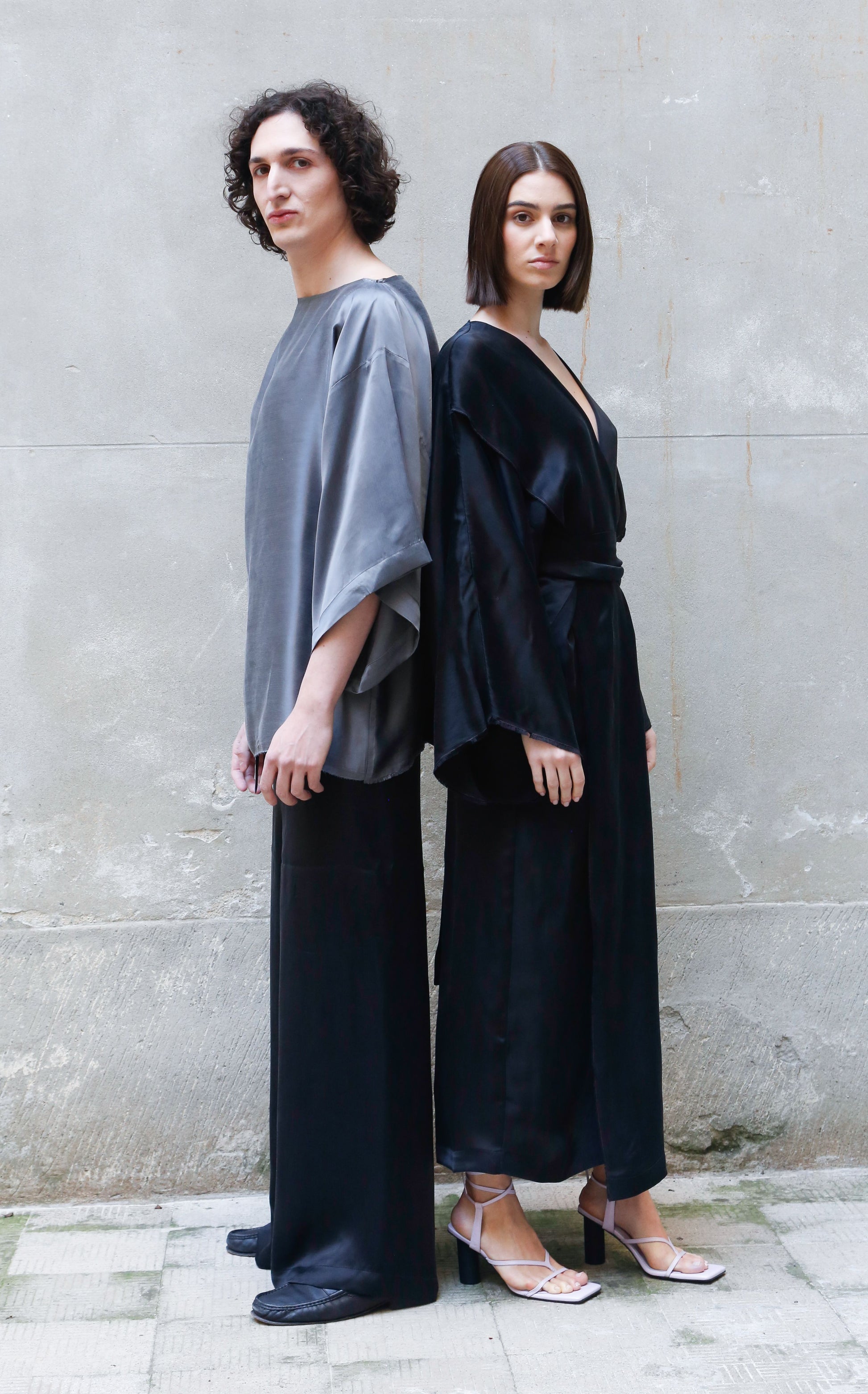 The pattern is developed based on a zero-waste technique that eliminates textile waste at the design stage, specialty of ZEROBARRACENTO.
