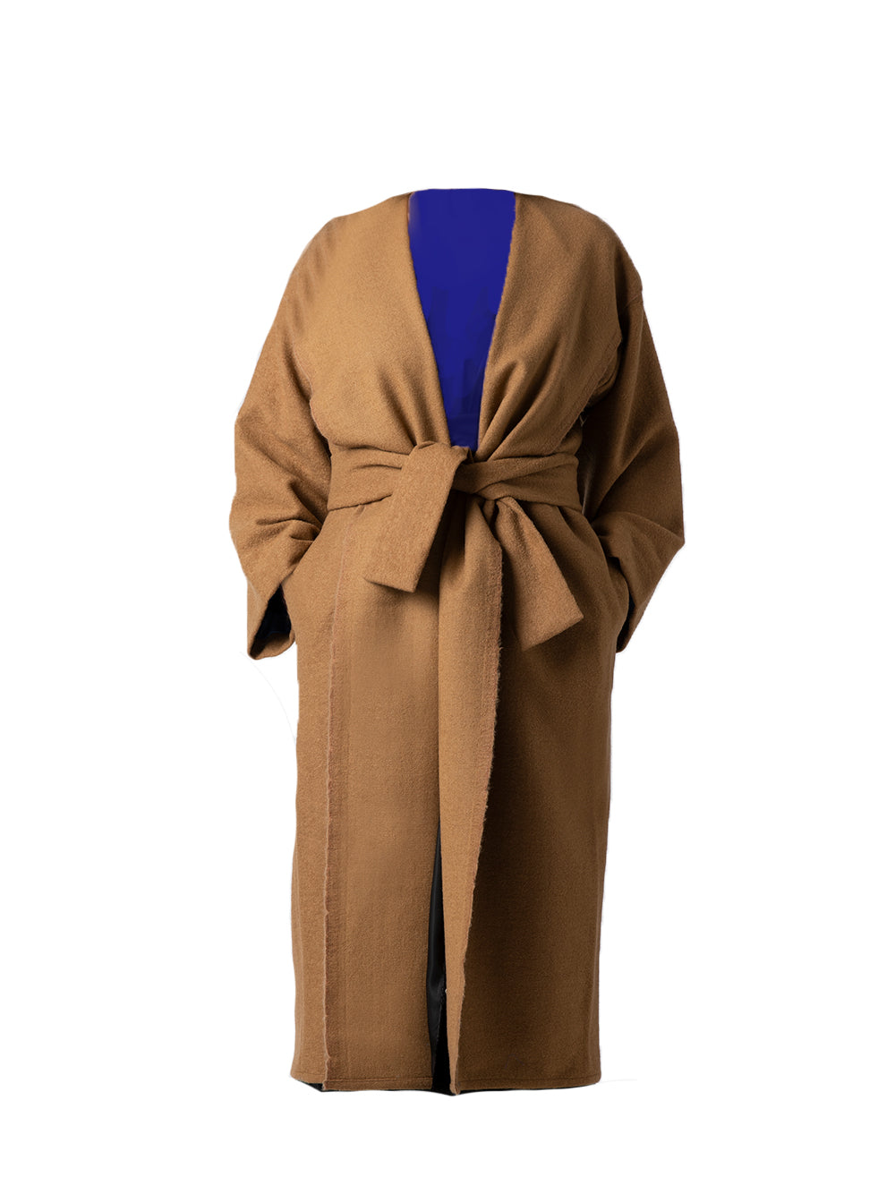 This extra long coat in end of roll, blended wool is a timeless and gender-neutral piece. Made in Italy with high quality materials it's developed making use of the distinctive zero-waste technique, speciality of ZEROBARRACENTO.