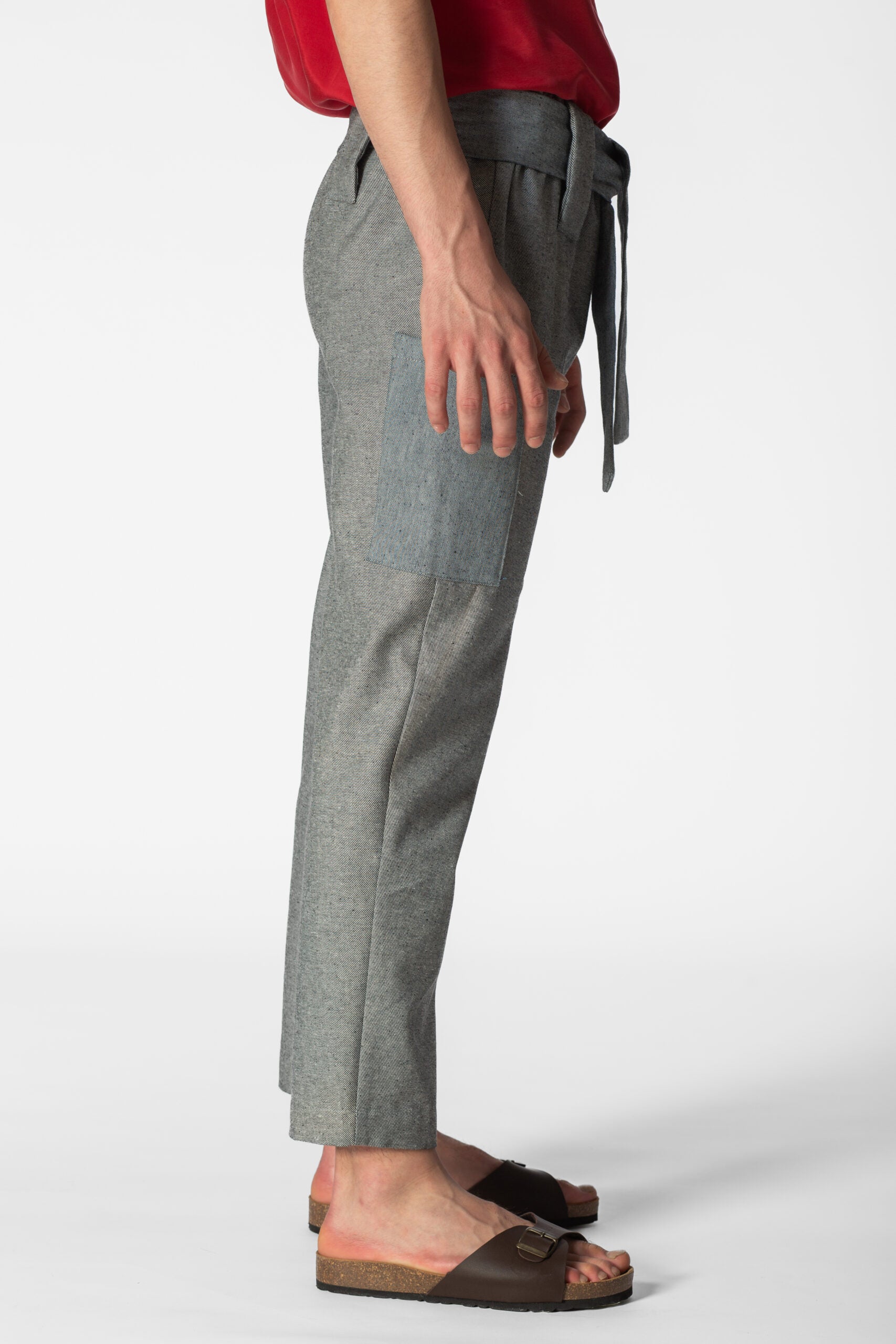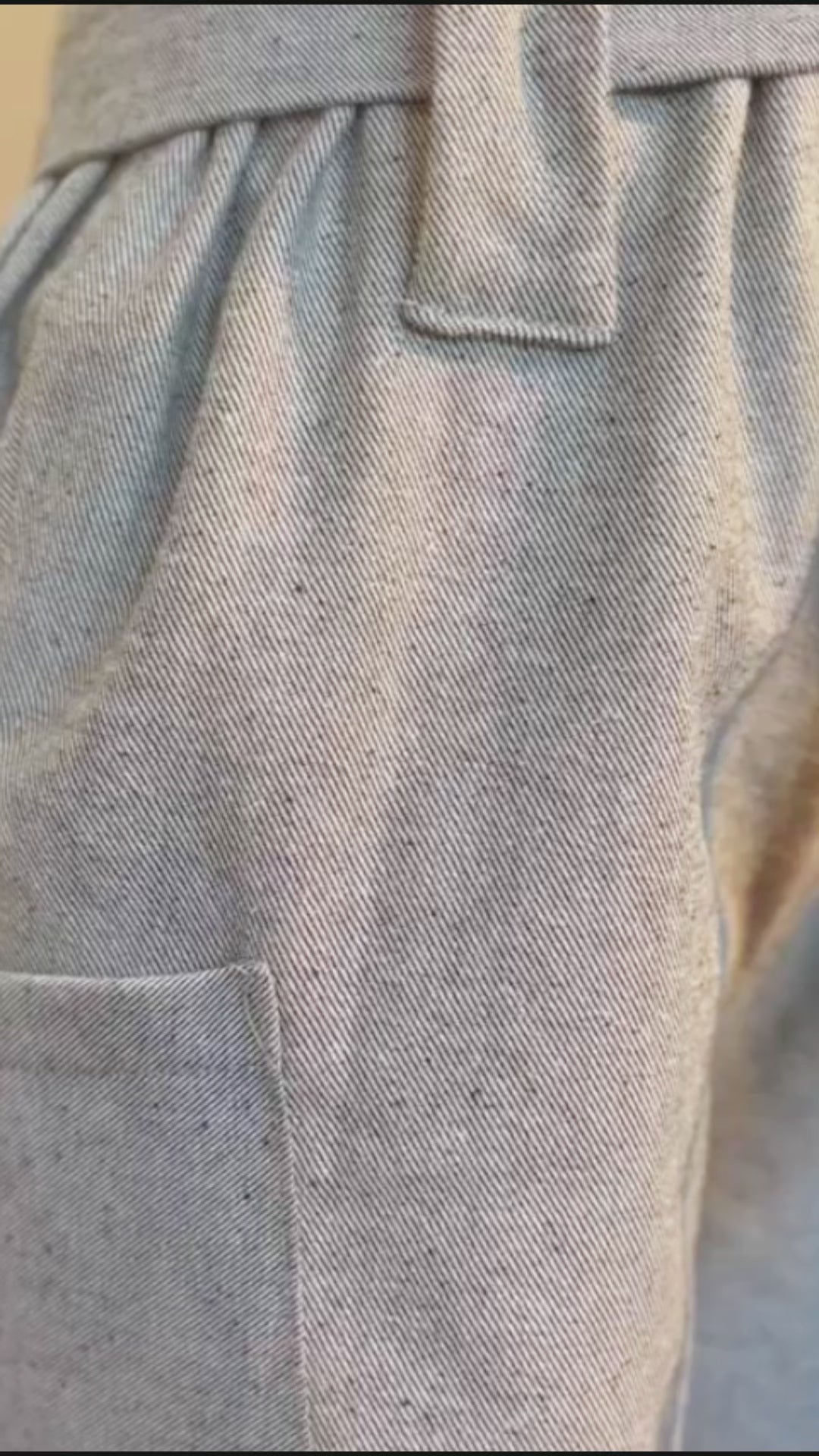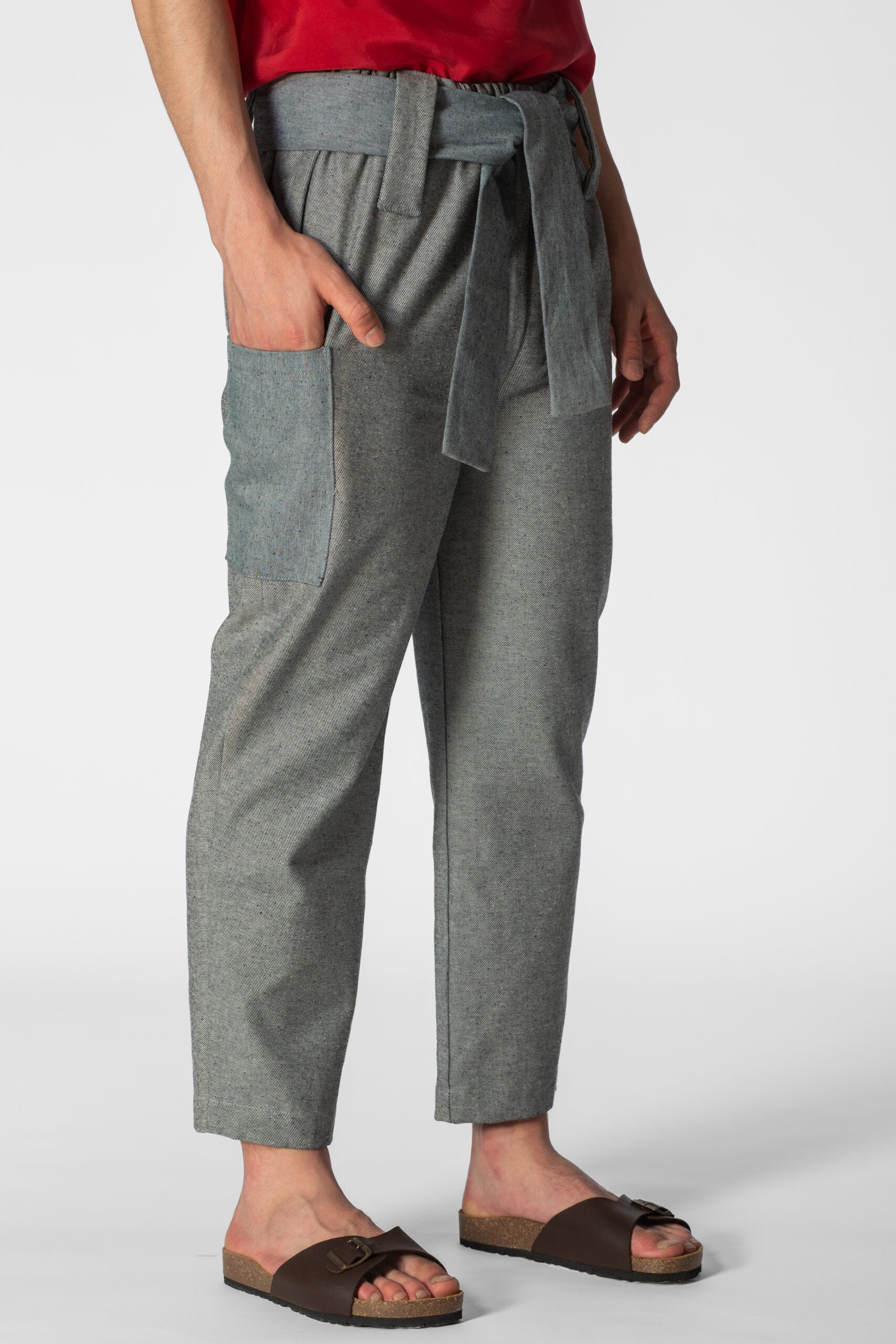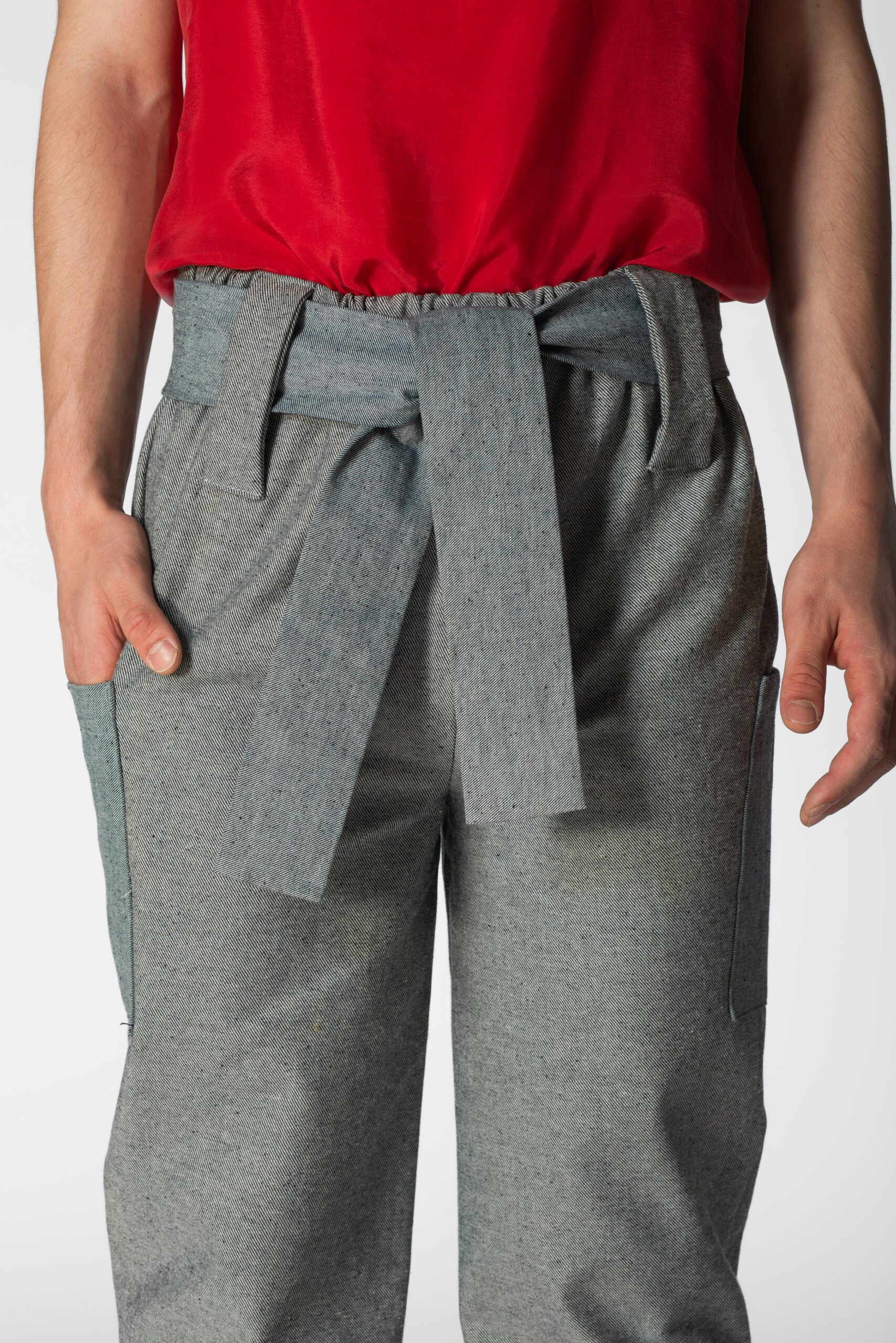 Our HANE PANTS ECOTEC denim pants have minimalist shapes, ankle length and are designed to wrap the legs Made in Italy with high-quality materials, it has been designed making use of the distinctive zero-waste technique, a special feature of ZEROBARRACENTO.