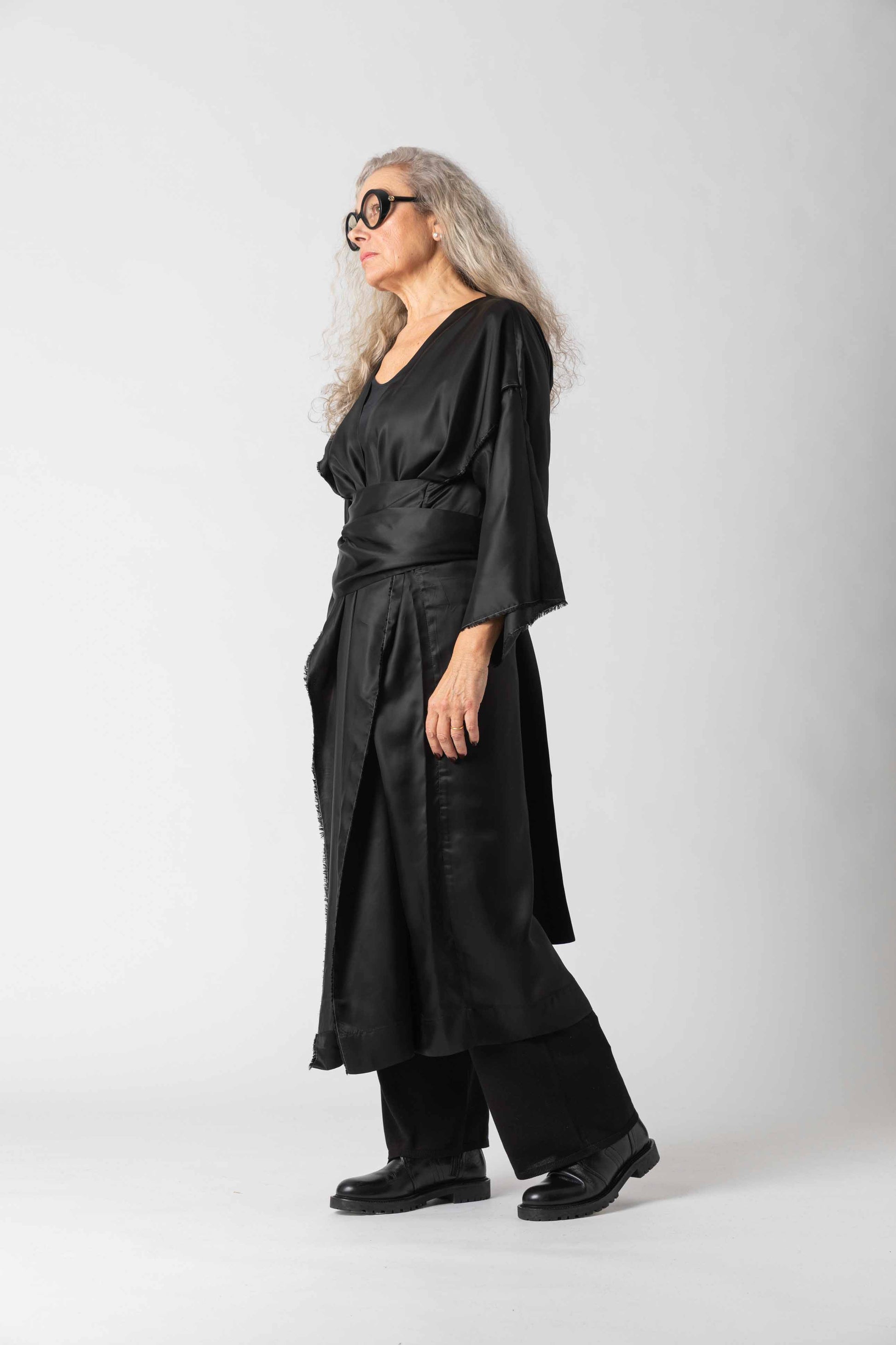 The Nagajuban (長 襦 袢), or Juban, is a sort of petticoat for both men and women for the more formal Kimono (it should not be worn with Yukata or other types of garment). In our case, we are offering you an extremely versatile contemporary kimono that could be used as wrap, nightgown or in any other way you may like!