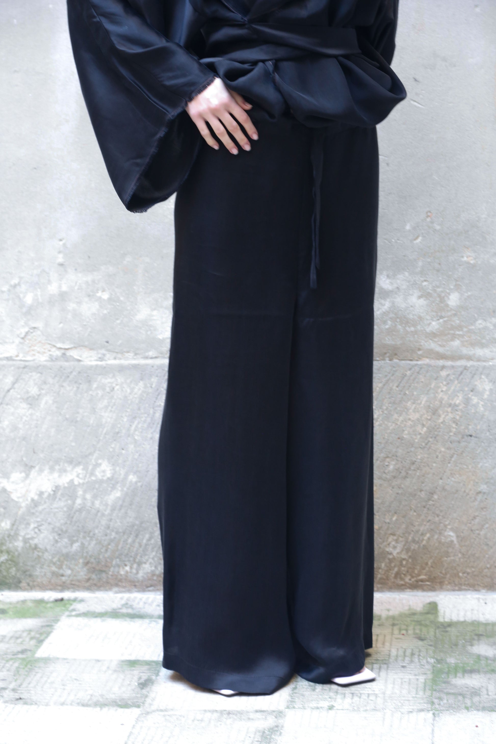 Gender-neutral and summer wide trousers with coulisse on the waist.