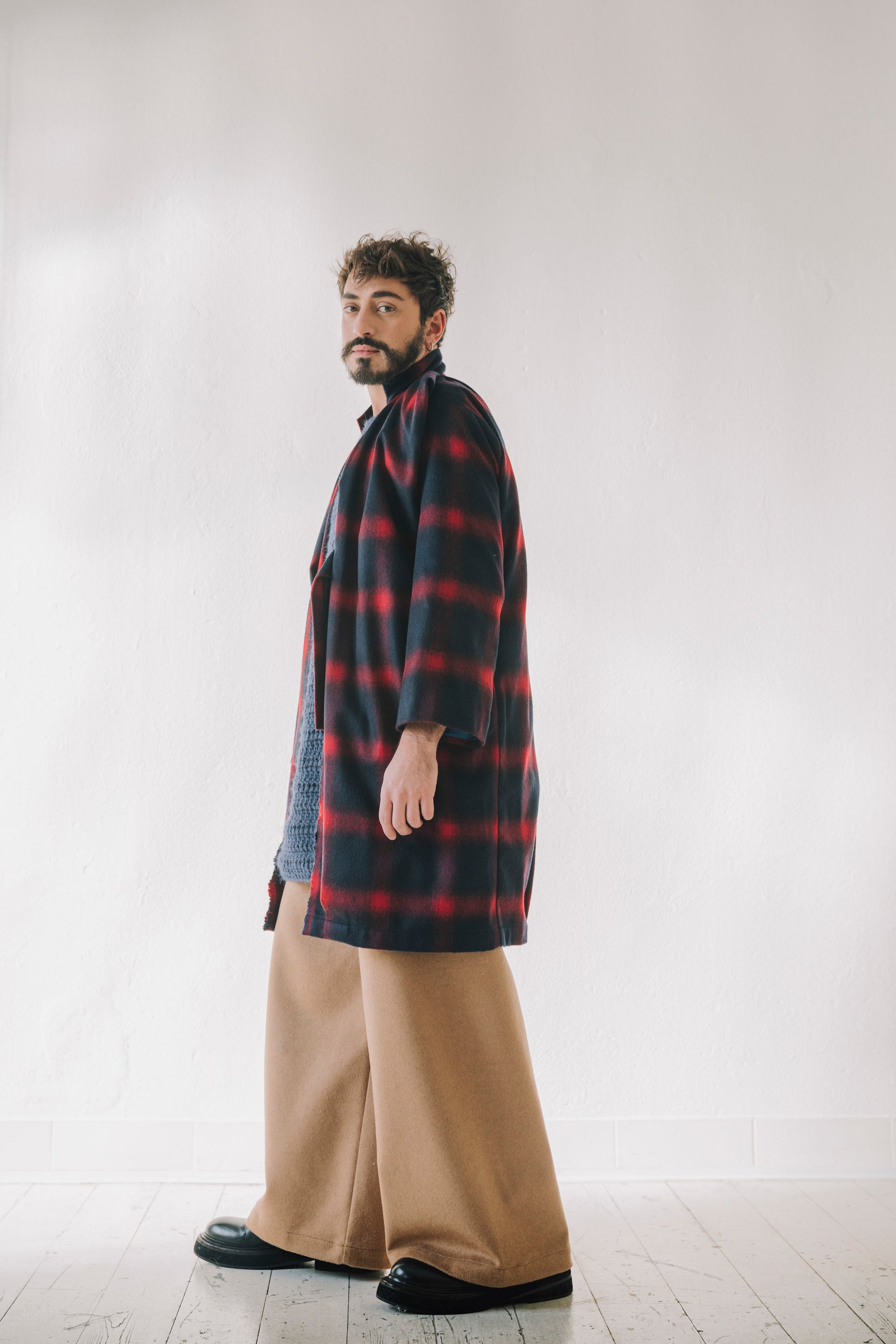 This midi coat in recycled wool by Manteco or Re.VerSo is a timeless and gender-neutral piece. Made in Italy with high quality materials it has been designed making use of the distinctive zero-waste technique, a special feature of ZEROBARRACENTO.