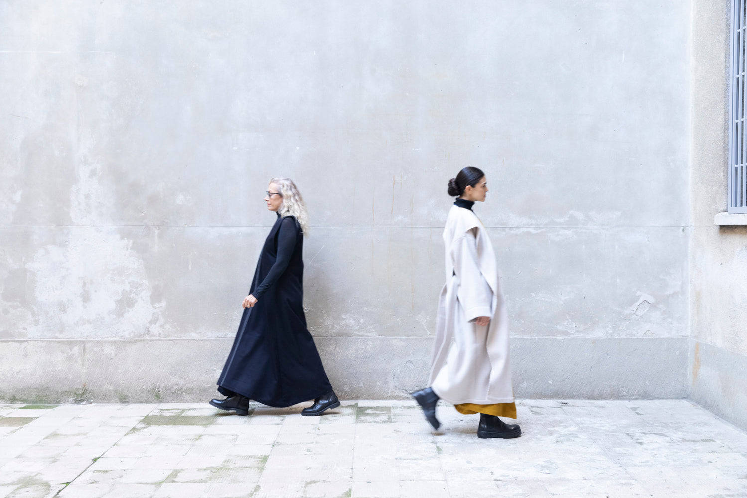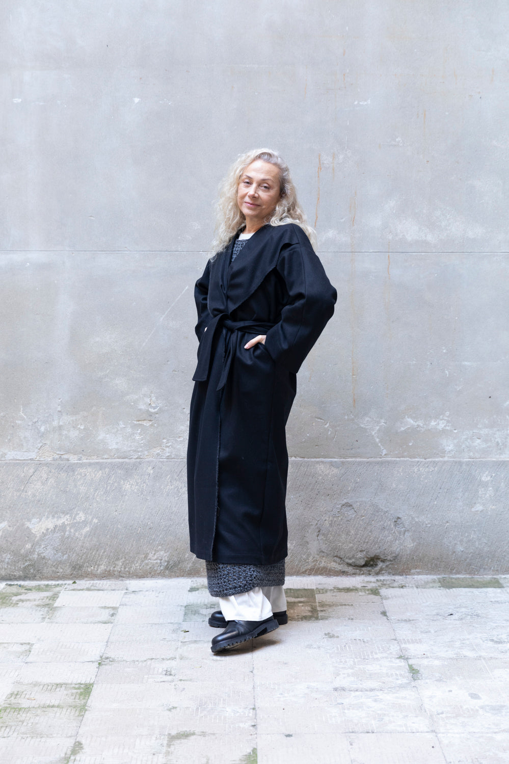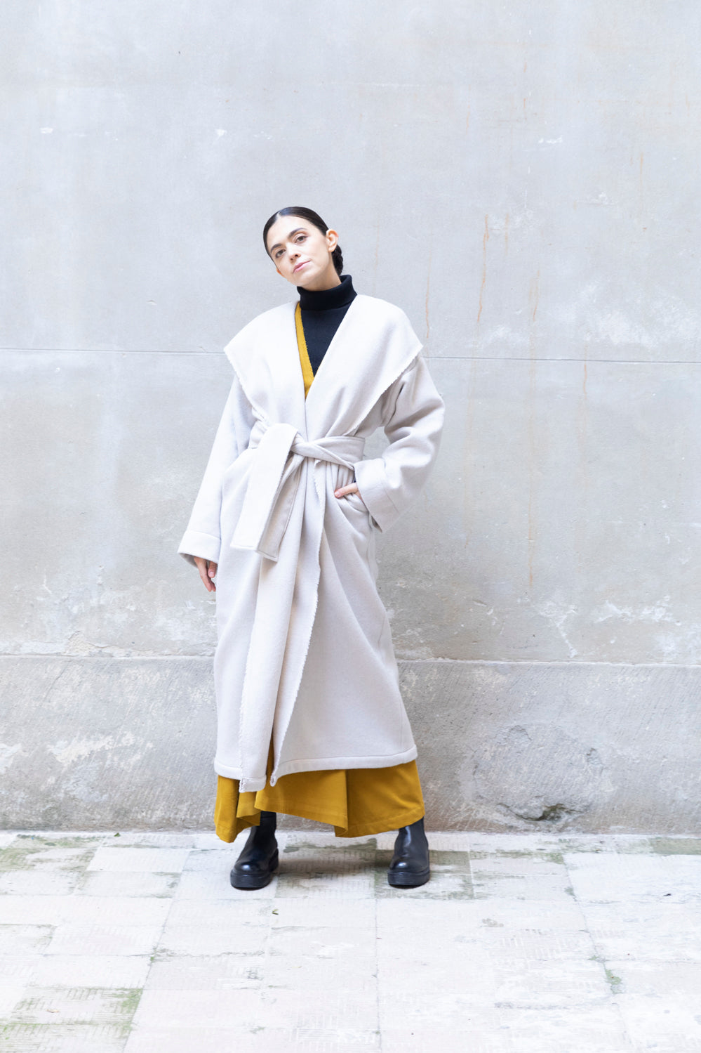 This long coat made of recycled wool by Bi Bye® or Re.VerSo is a timeless and gender-neutral piece. Made in Italy with high-quality materials, it has been designed making use of the distinctive zero-waste technique, a special feature of ZEROBARRACENTO.