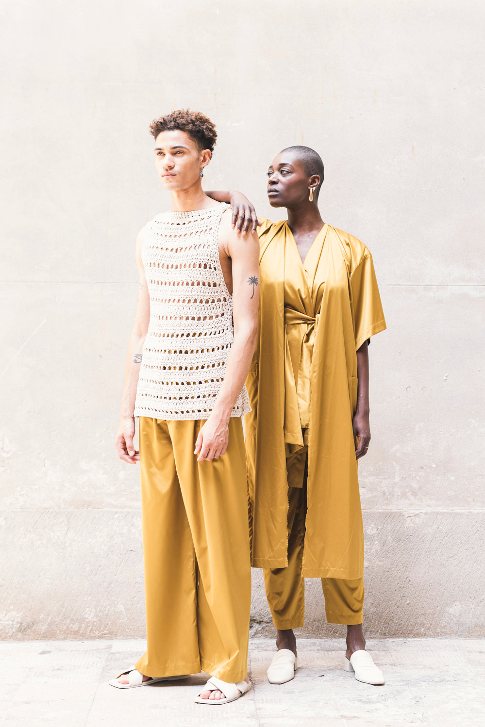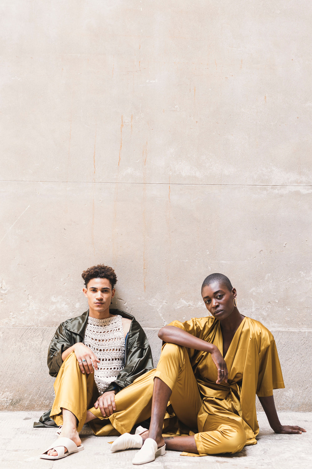 The female model is 170 cm and is wearing a size Small, the male model is 180 cm and is wearing a size Medium