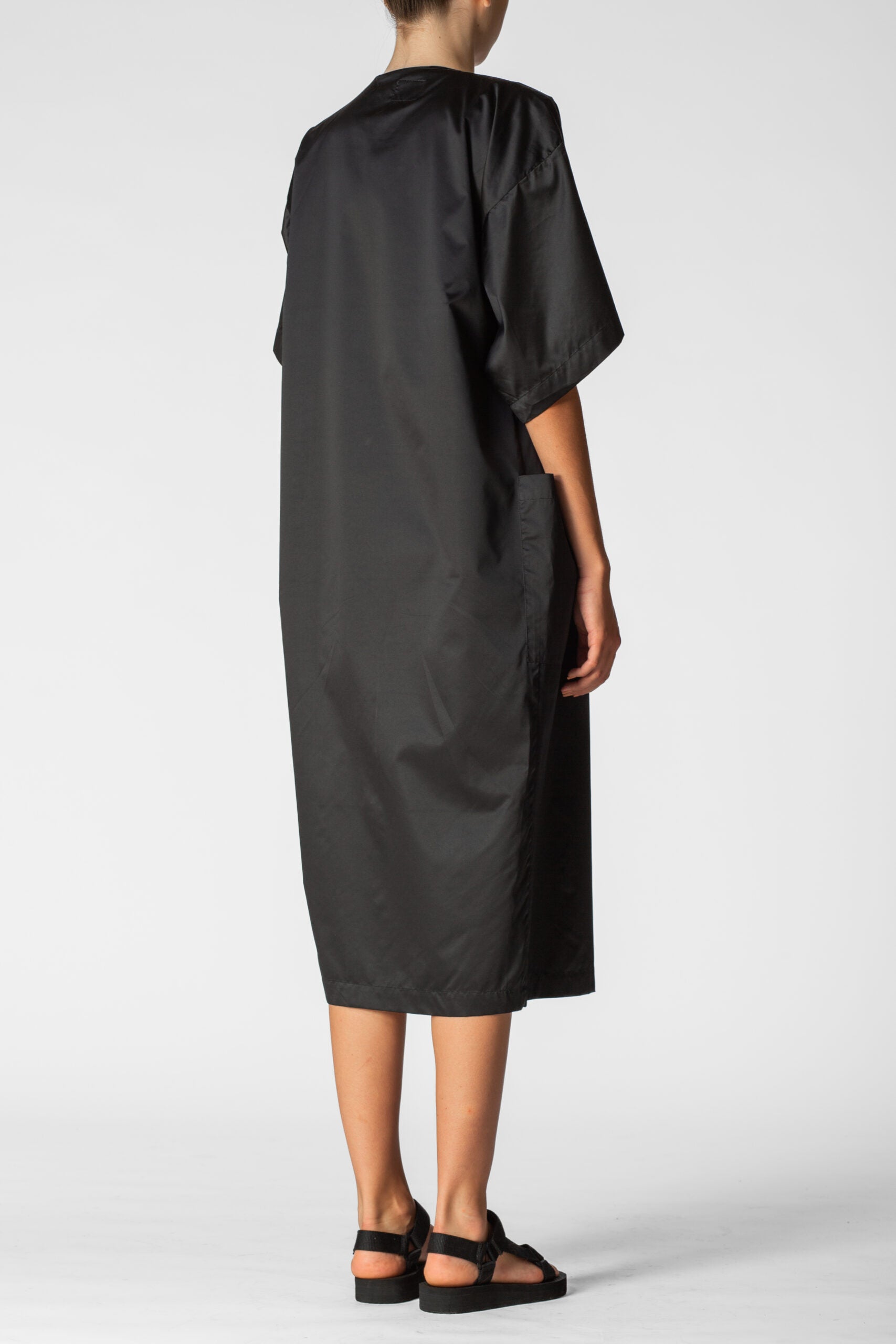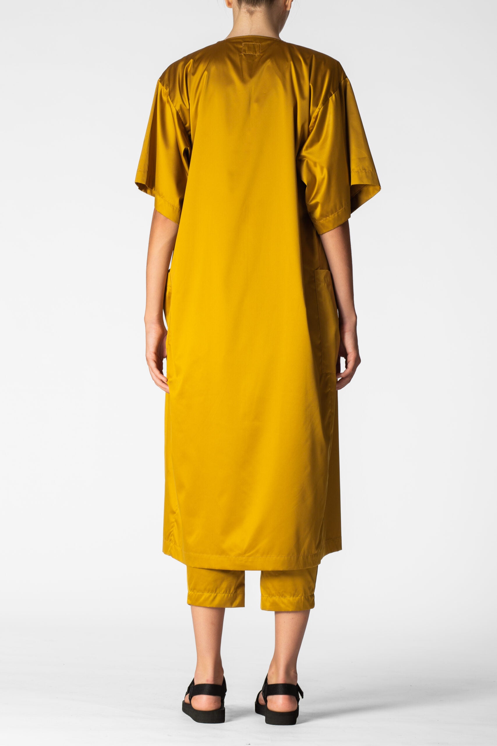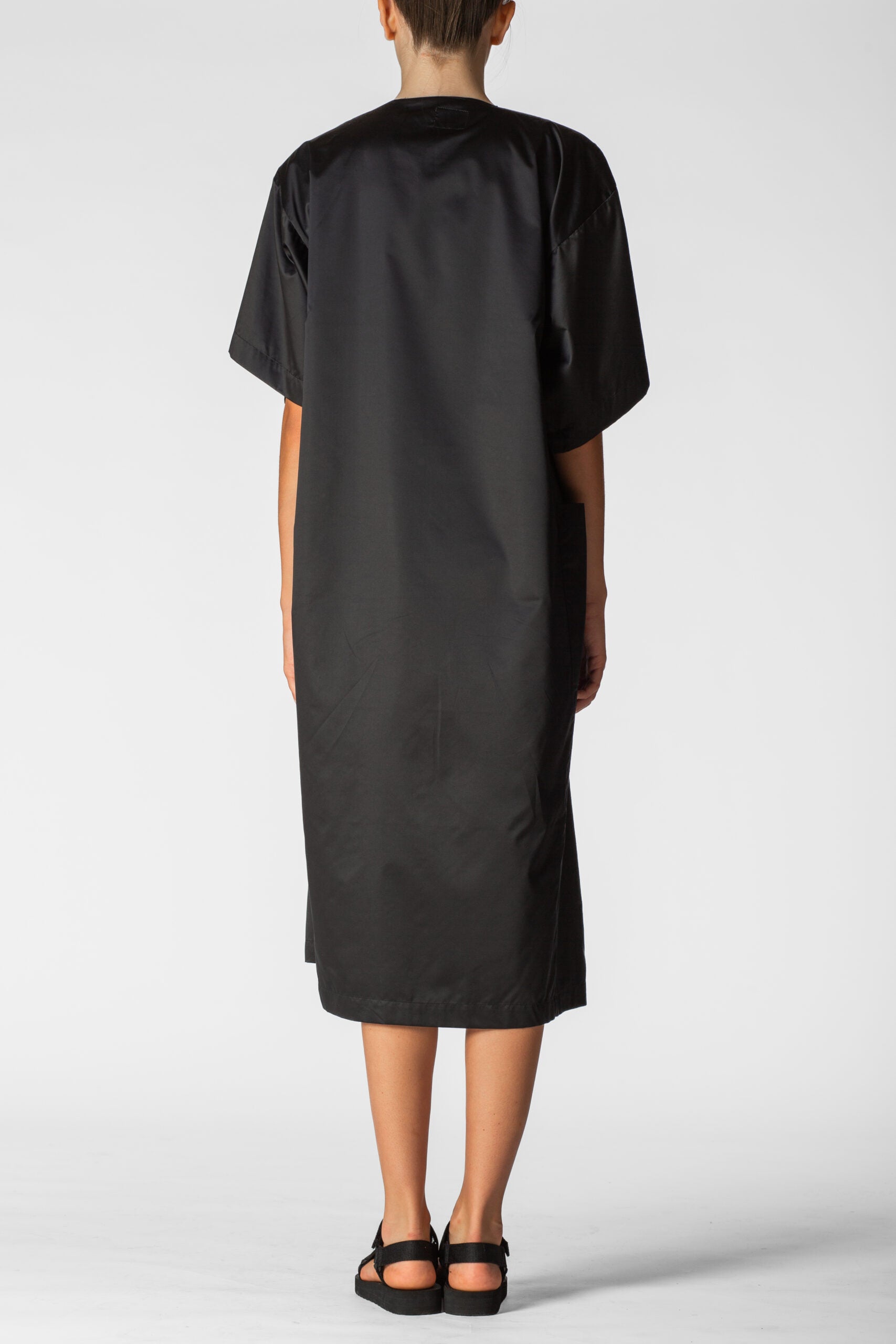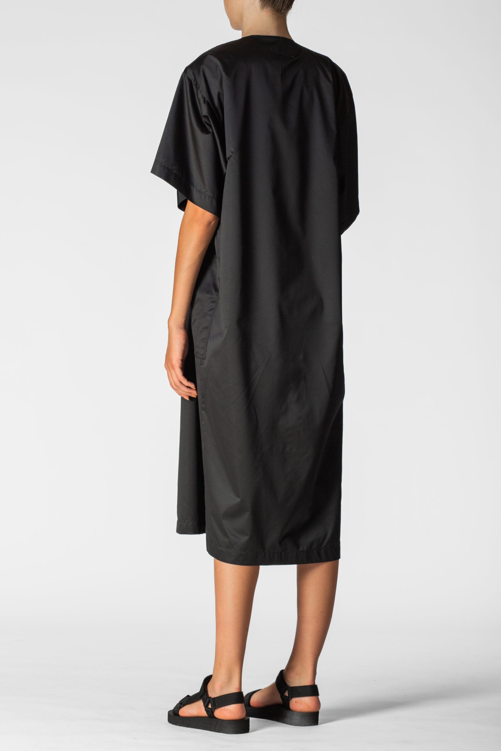 Oversized waterproof short sleeves tunic for a relaxed approach to life allowing versatility, modularity and fluidity. Minimalistic shapes with wide, three-quarter-lenght sleeves. A sharp, monochromatic statement for form-defining shapes.