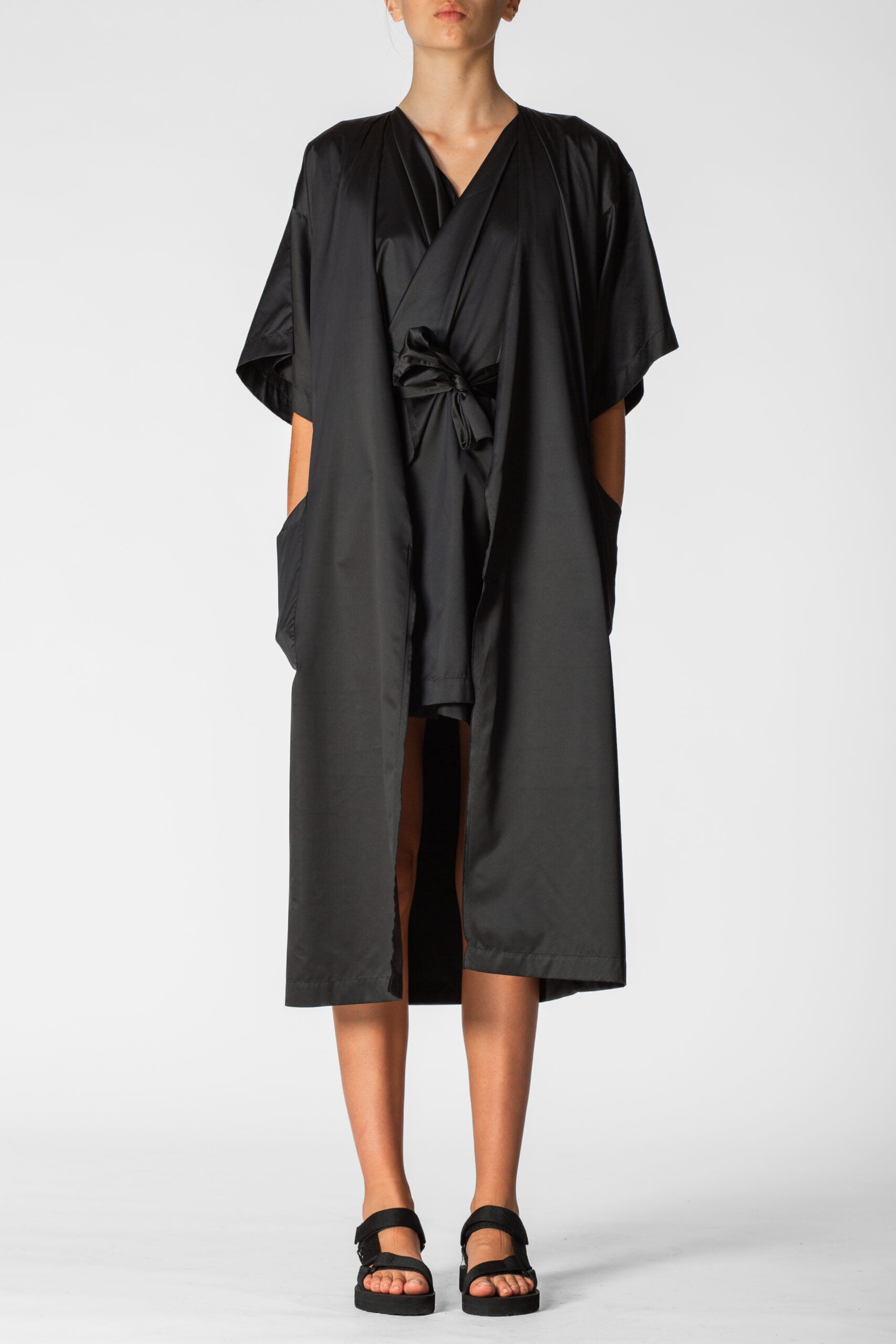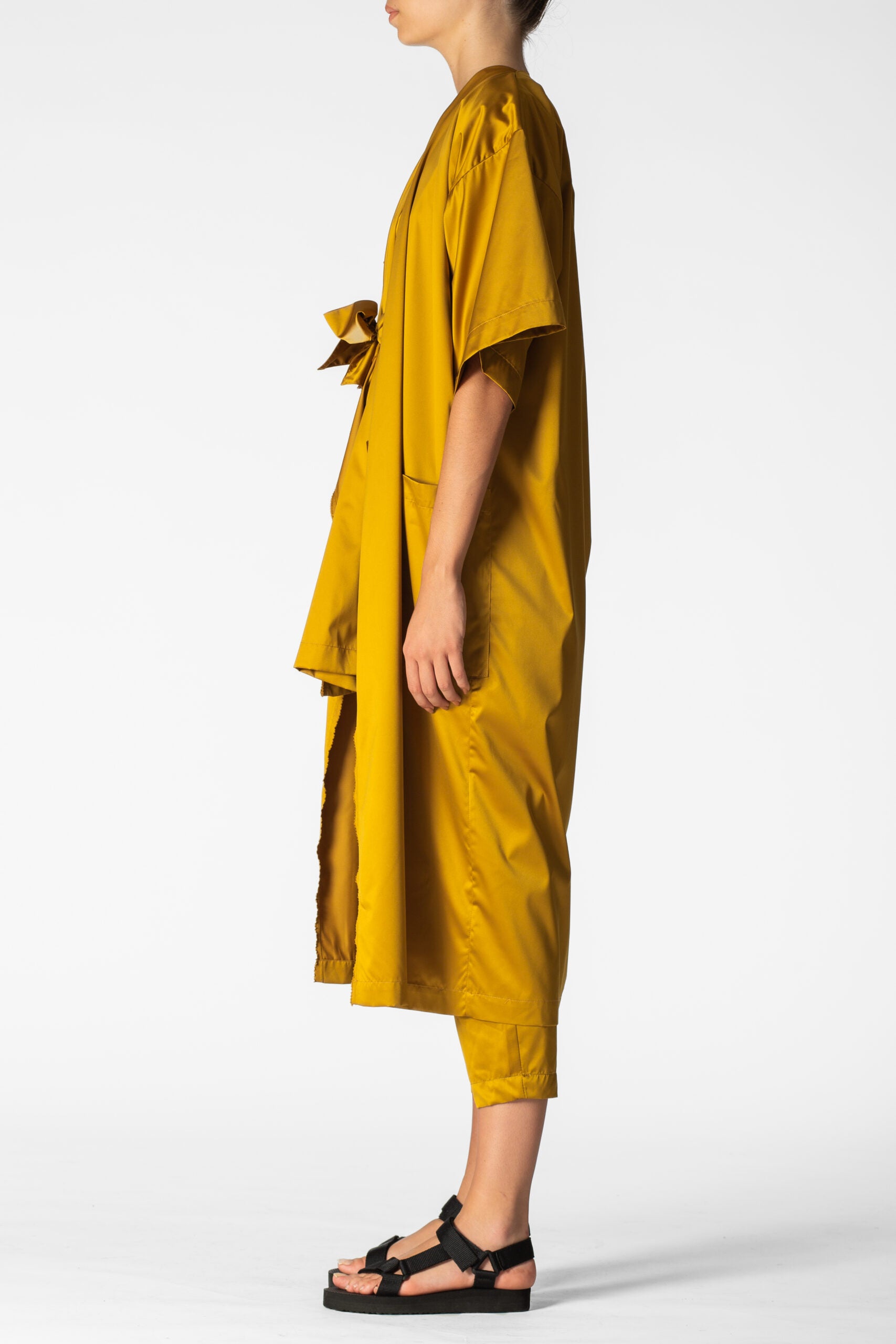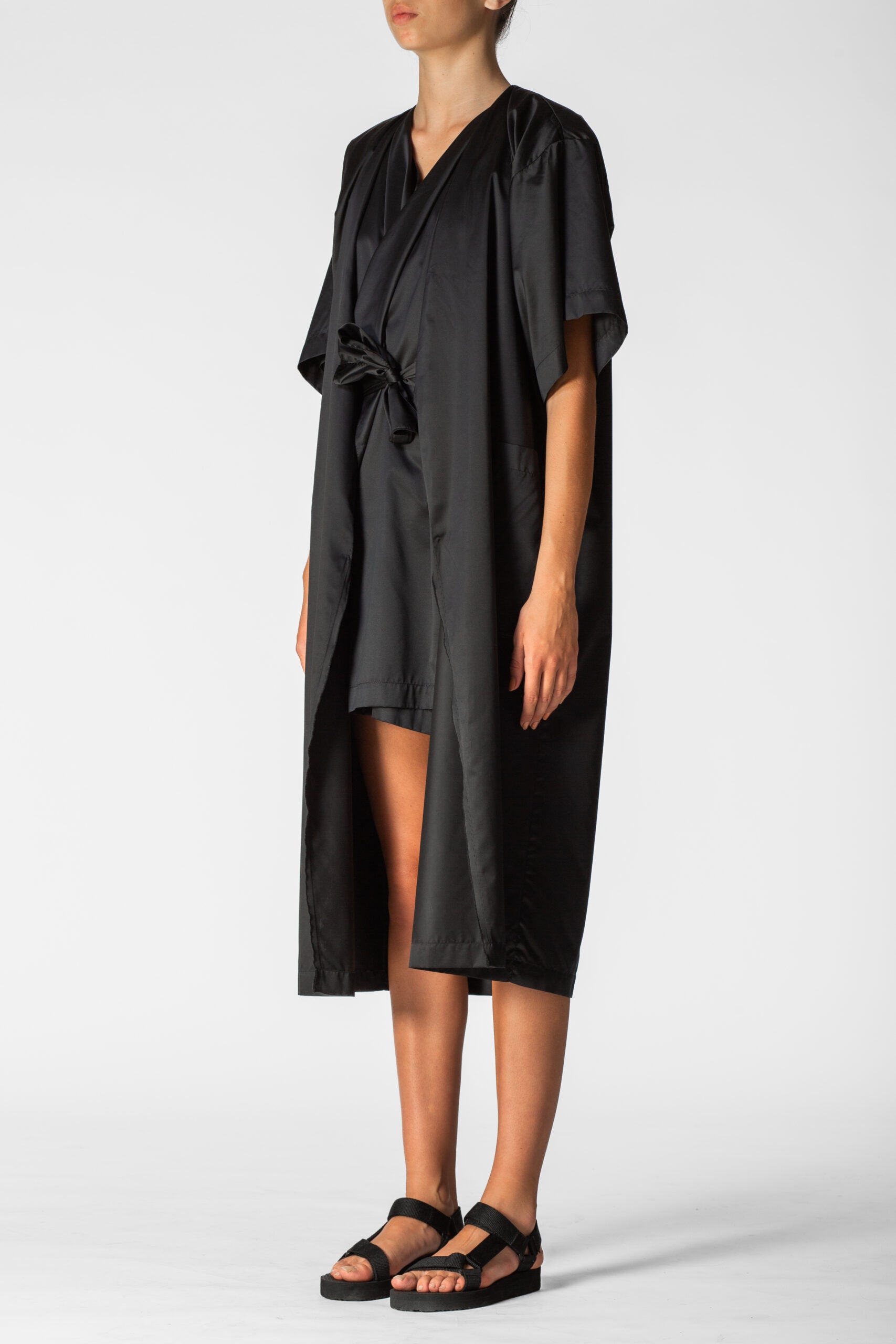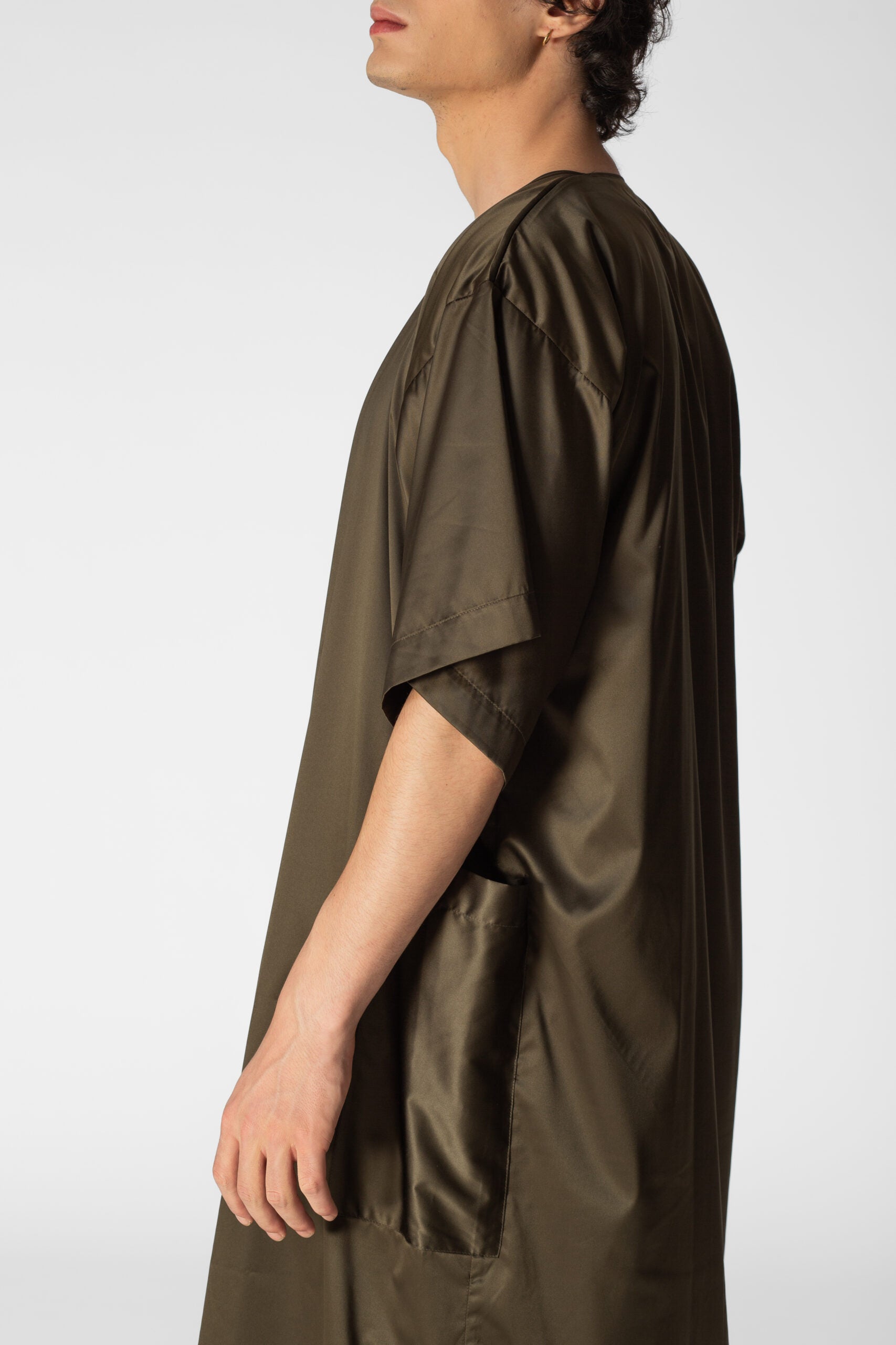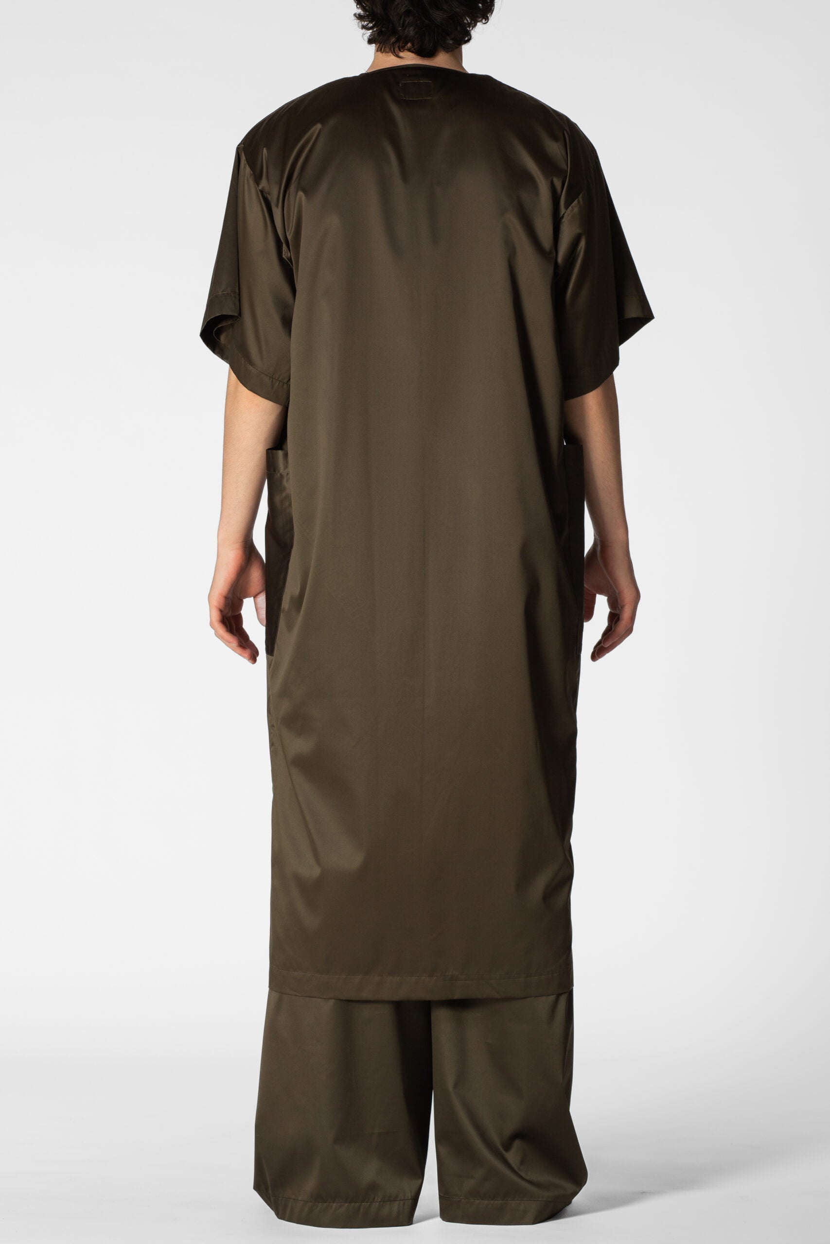Oversized waterproof short sleeves tunic for a relaxed approach to life allowing versatility, modularity and fluidity. Minimalistic shapes with wide, three-quarter-lenght sleeves. A sharp, monochromatic statement for form-defining shapes.