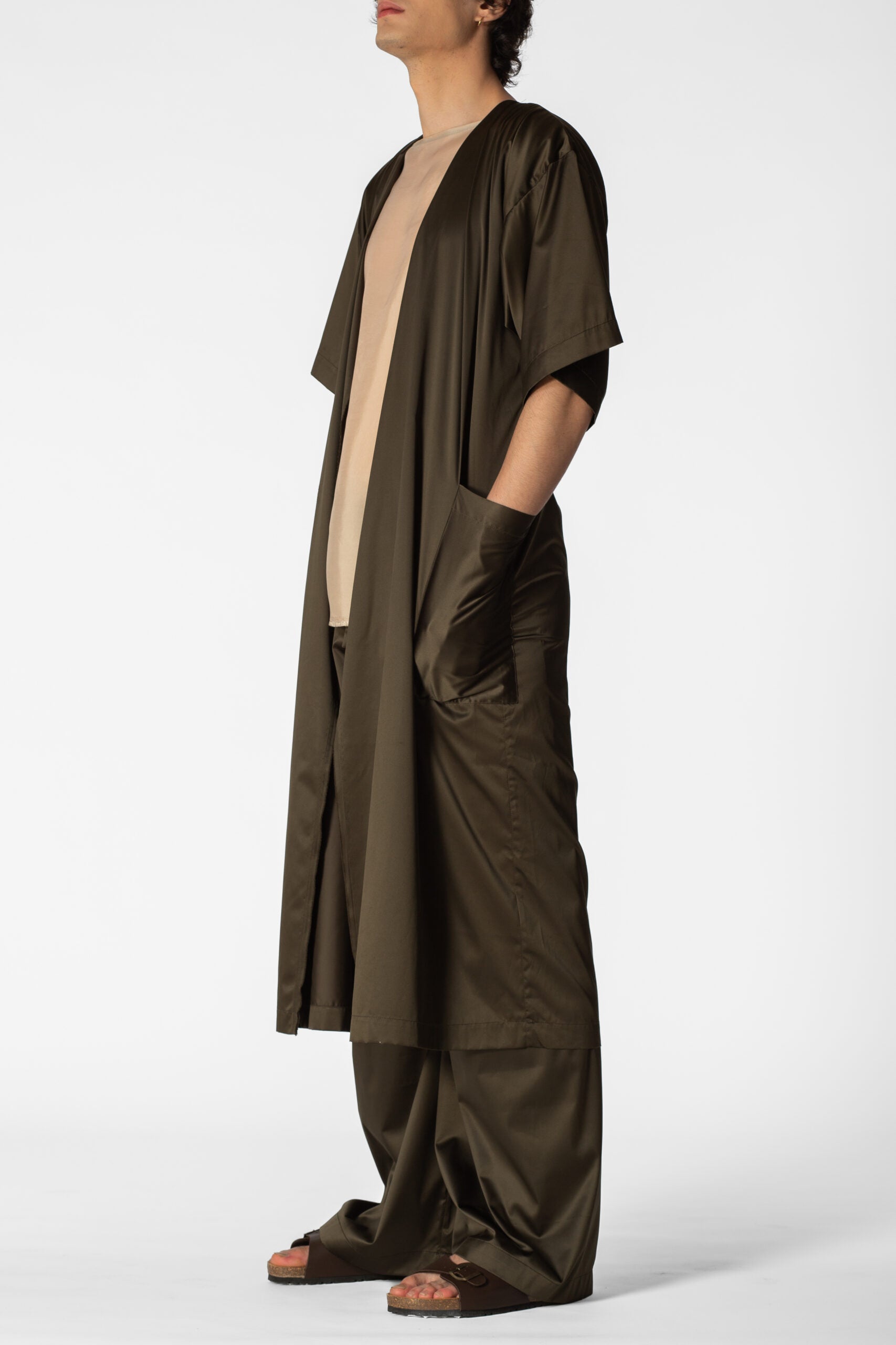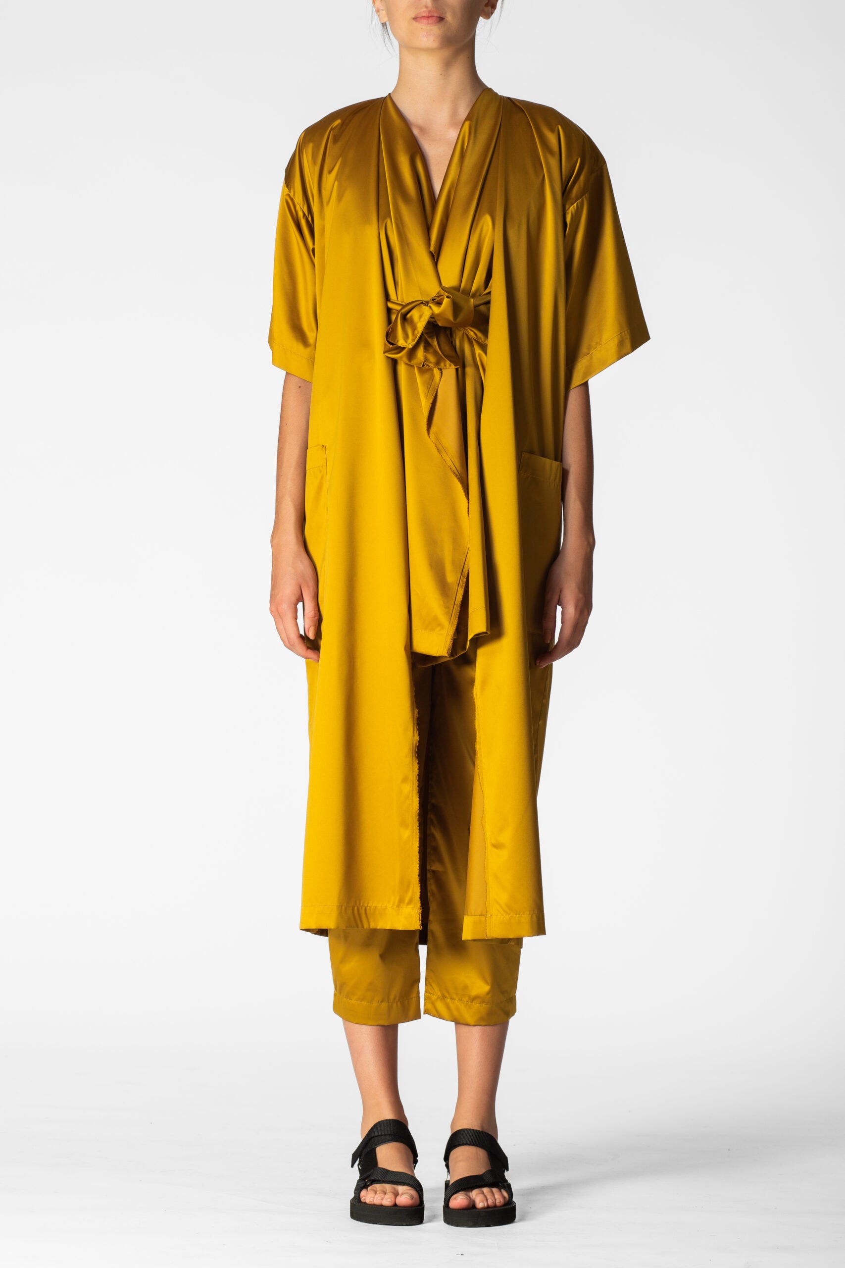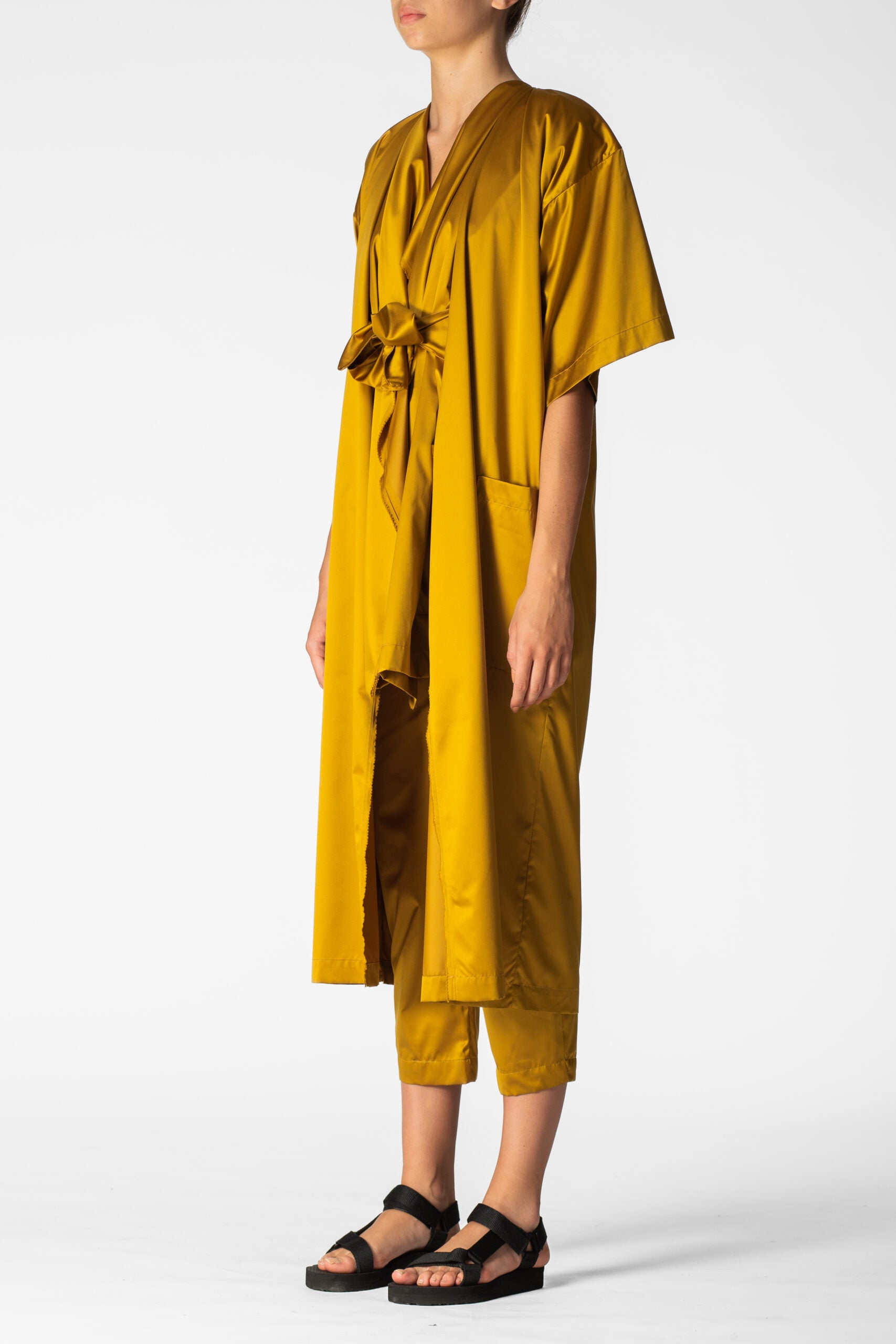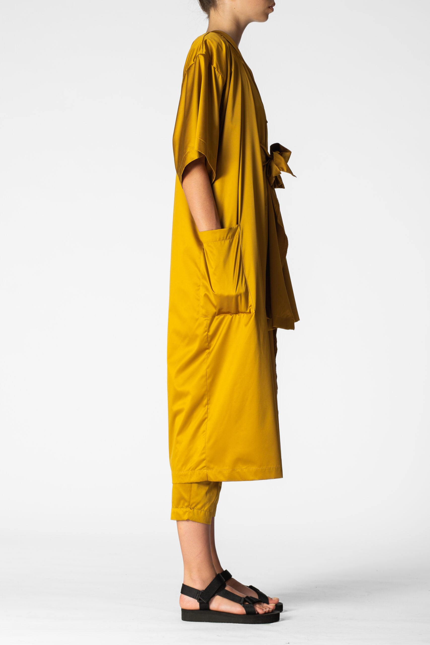 Oversized waterproof short sleeves tunic for a relaxed approach to life allowing versatility, modularity and fluidity. Minimalistic shapes with wide, three-quarter-lenght sleeves. A sharp, monochromatic statement for form-defining shapes.