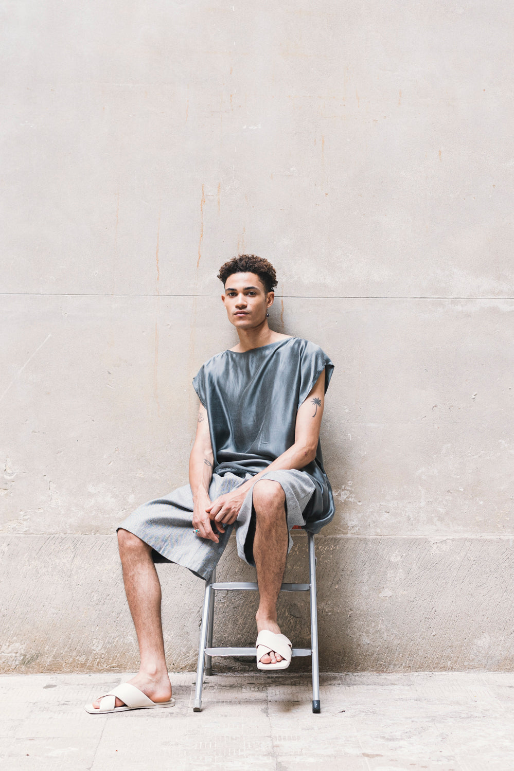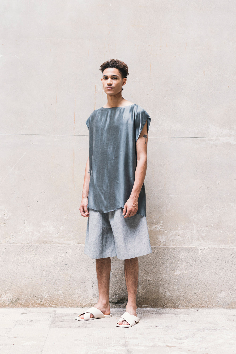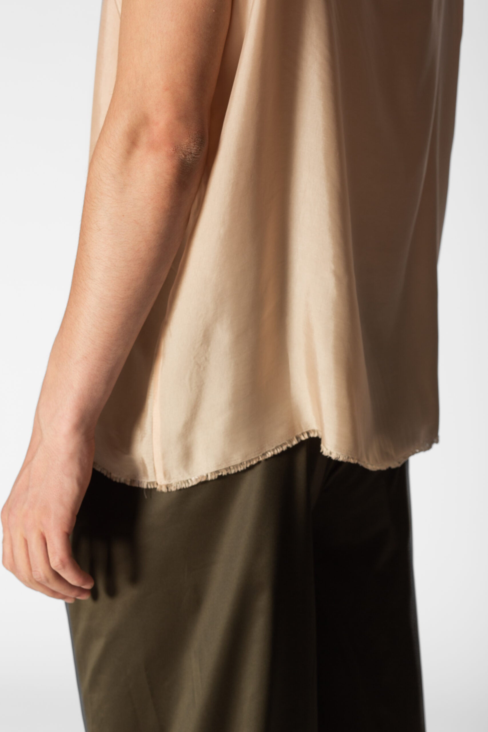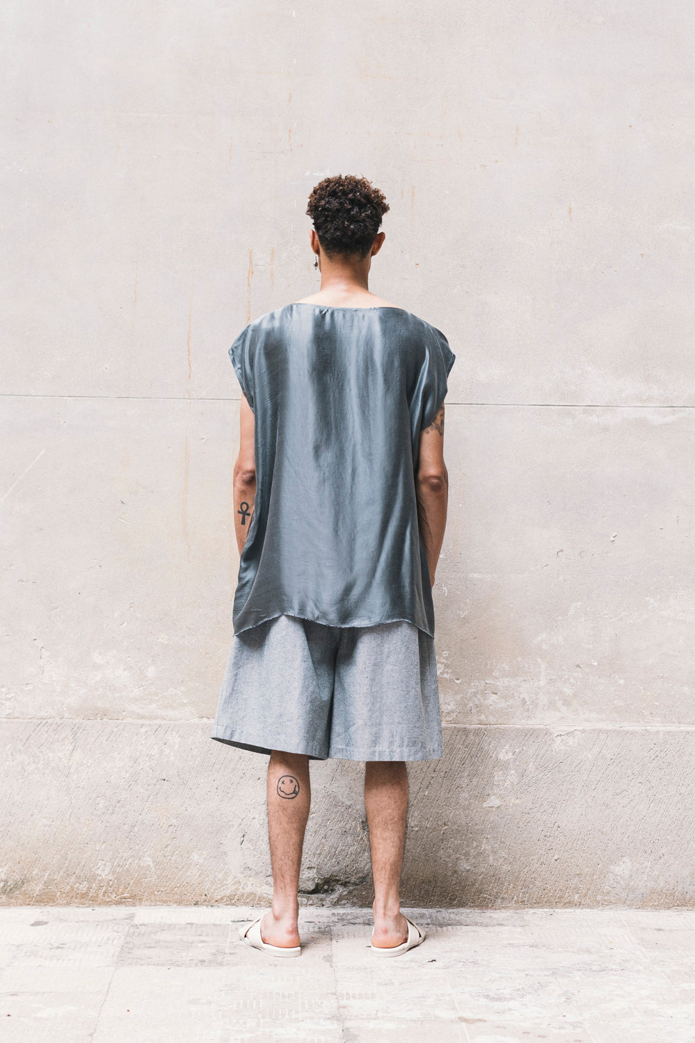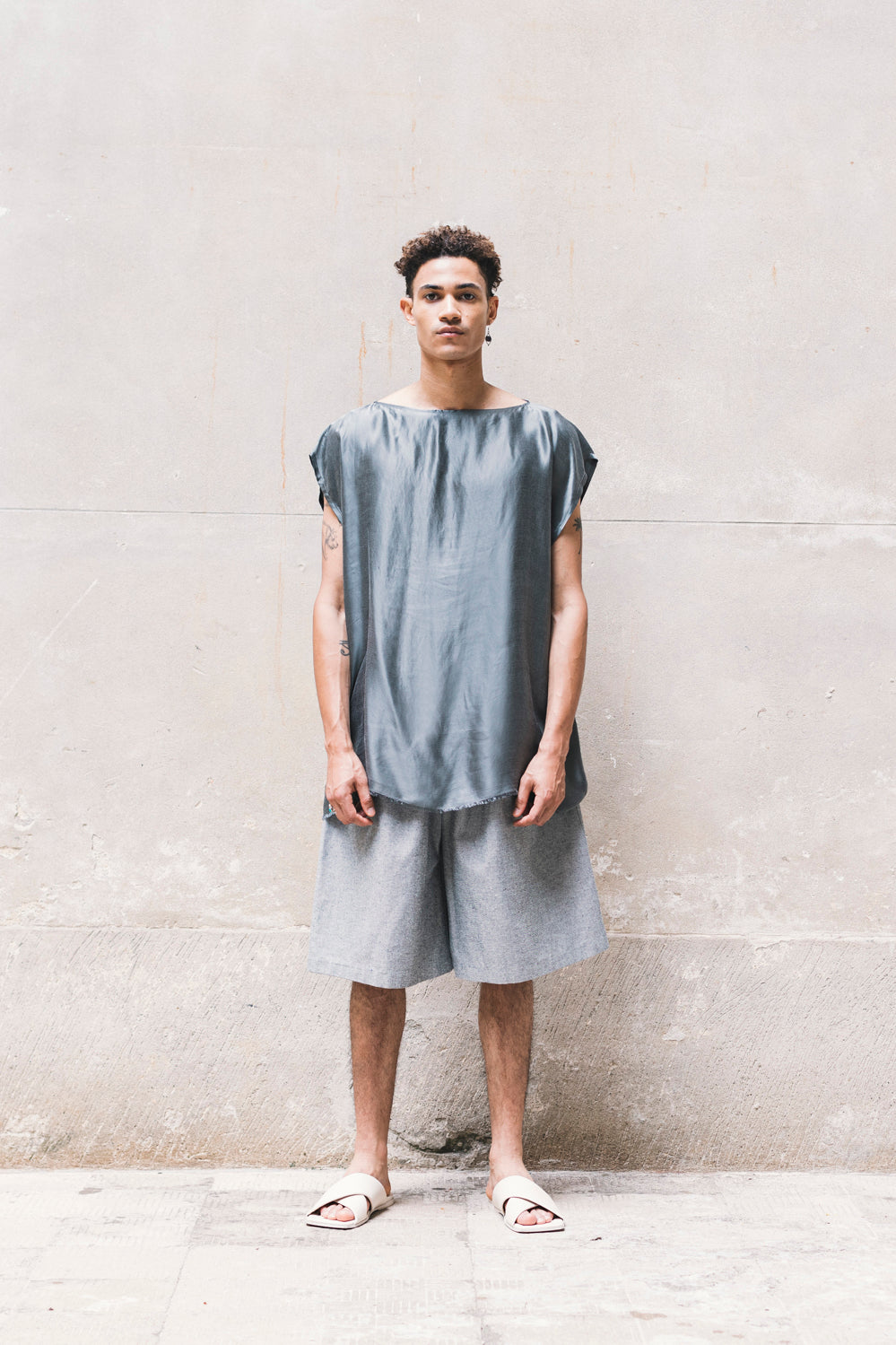 Our collarless TOME is a t-shirt created with RCS certified precious cupro fiber with fluid and peach finish touch.