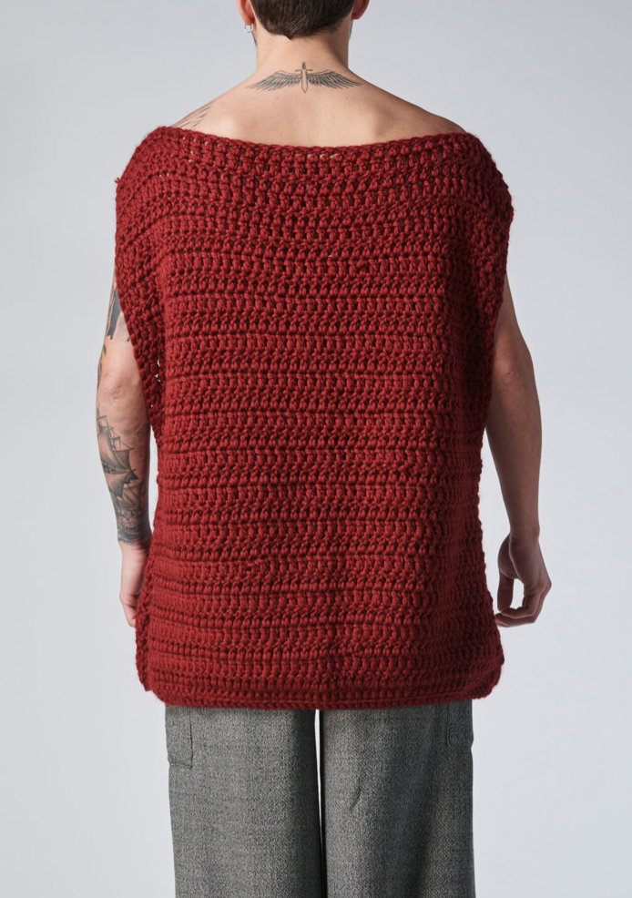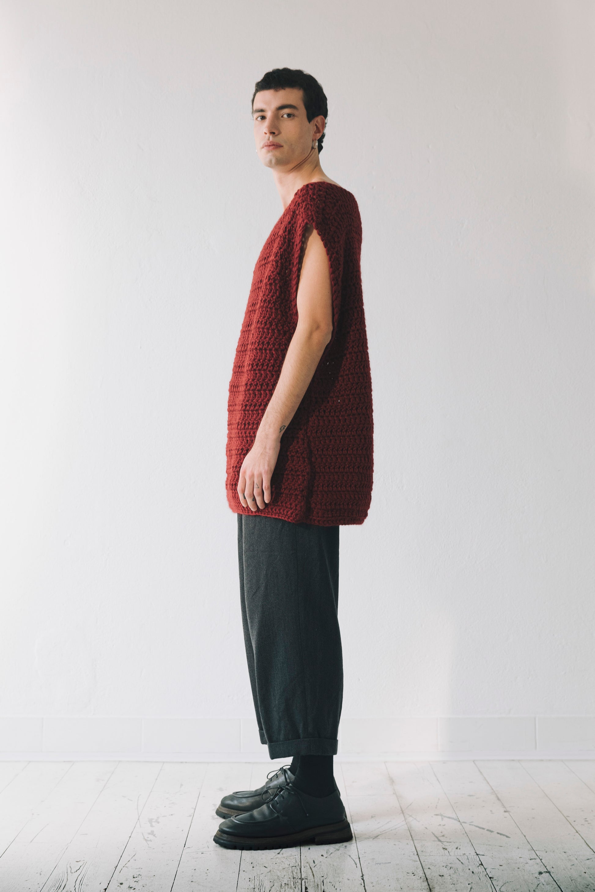 TIISHATSU means "t-shirt" in Japanese. This t-shirt/vest, knitted with a top-quality yarn resulting from certified Italian organic farming, combined with pure Andean alpaca, is a timeless and genderless piece. Made in Italy with high-quality, extremely light and ultra-soft wool, it has been designed making use of the distinctive zero-waste technique, a special feature of ZEROBARRACENTO.