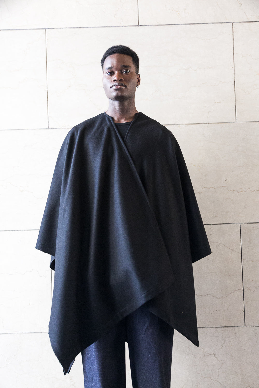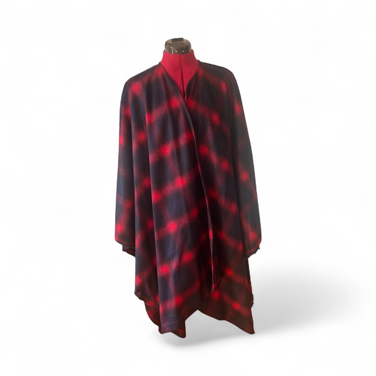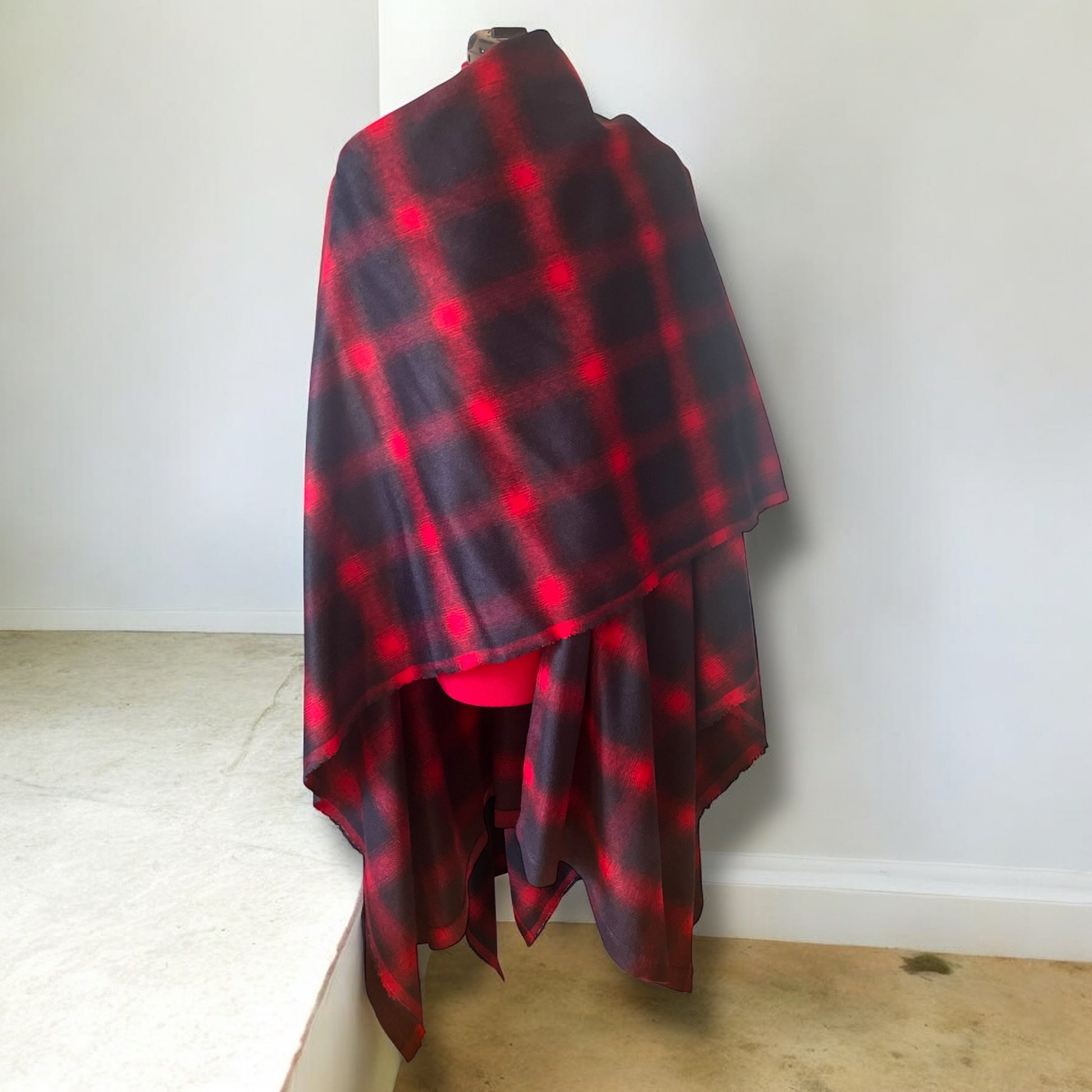 This black or white or check recycled wool cape (unique size) is perfect for a chilly winter day. The cape has an easy-care feel, with gentle fabric that will keep you comfortable all day long. Plus, the weight of the cape makes it perfect for relaxing or having an evening out in the city.